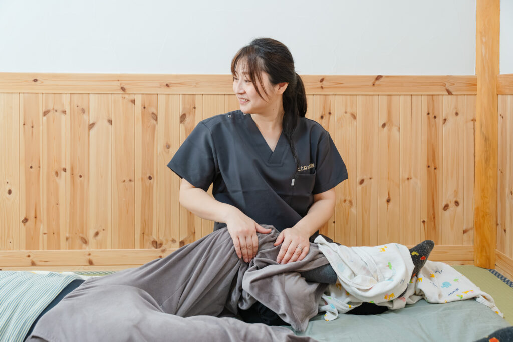 生後まもなくから、歩き始め(1歳すぎ頃)までのお子さんが対象です。痛いところを無理に動かしたりせず、全身に優しく触れていくので、ご安心ください。