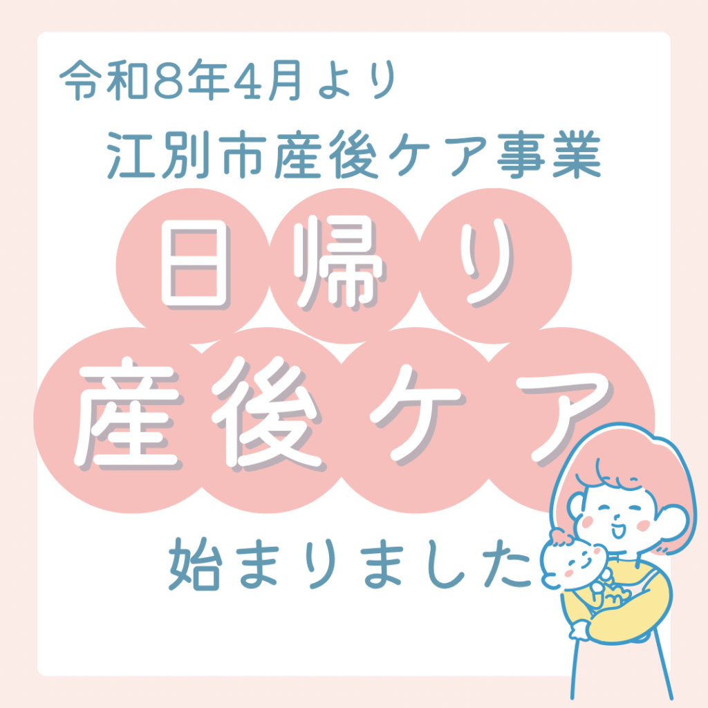 こんにちは! Instagramや公式LINEからはお知らせさせていただいておりますが、 このたび令和8年4月より、 江別市産後ケア事業で当院の日帰り型産後ケアがご利用できるようになりました♡ これまでも、 妊娠中から そして、あかちゃんがお生まれになってか… -
